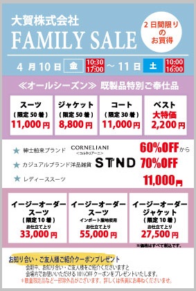 イージーオーダー、カジュアルアイテム等多彩に出品いたします。